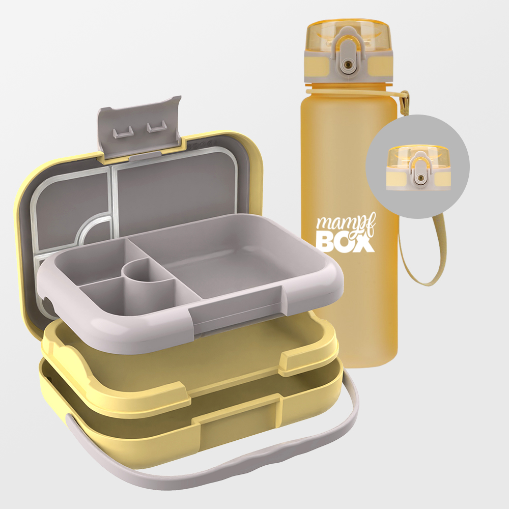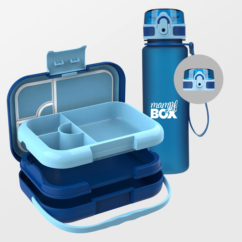 In unserem Bundle enthalten ist die MAMPFBOX Brotdose, unser Kühlakku, eine 500ml Trinkflasche, sowie ein Ersatzdeckel für die Trinkflasche. Gratis legen wir zu jedem Bundle unser Besteck in den Versandkarton.