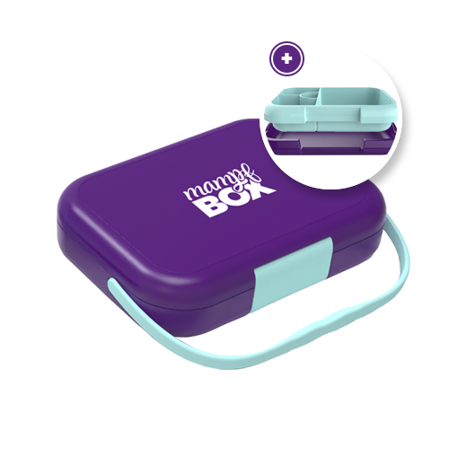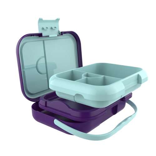 Unsere Mampfbox wird vollständig mit dem 4-Fächer-Einsatz, der Innenabdichtung und dem Henkel geliefert. Zusätzlich befindet sich im Bundle das farblich passende Kühlakku und der dazugehörige 4-Fächer-Einsatz.